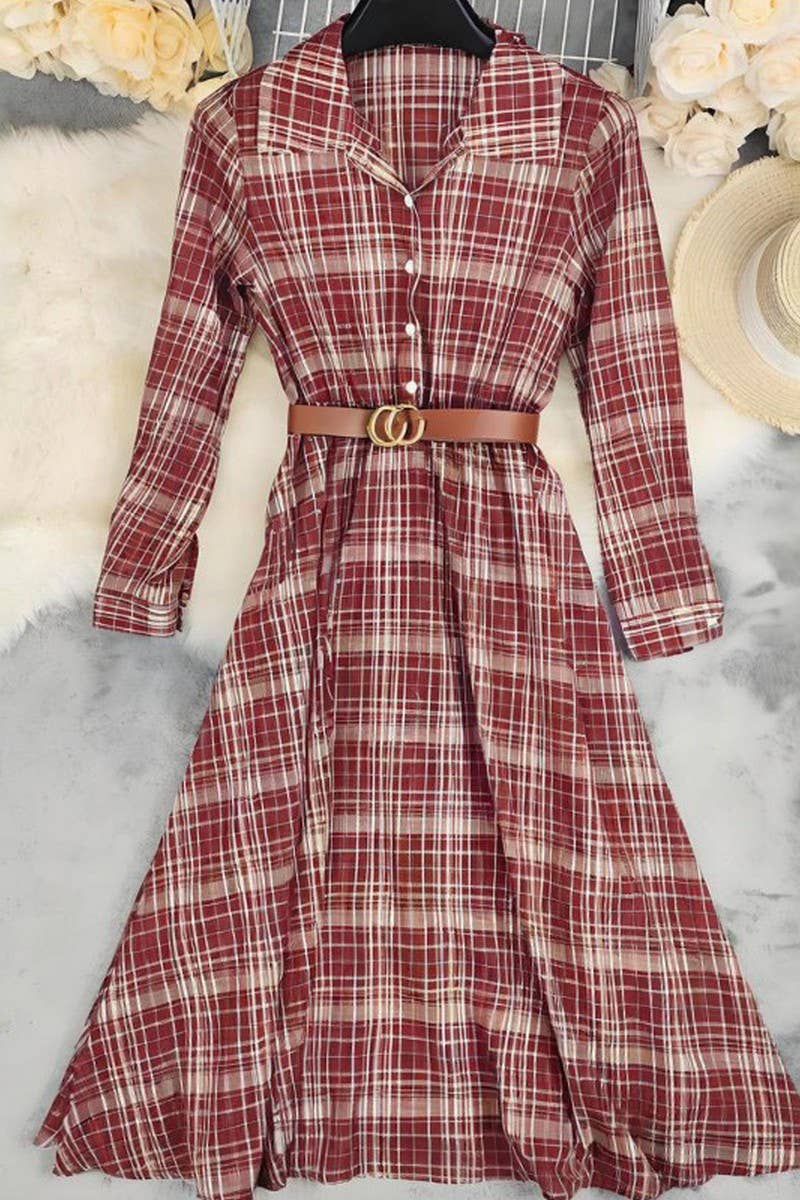 This refined vintage plaid floral dress combines classic elegance with contemporary comfort. The sophisticated V-neck and long sleeves create a polished silhouette, while the expertly blended 95% polyester and 5% spandex fabric ensures both durability and ease of movement. Offered in sizes S through XL, this versatile piece seamlessly transitions from professional settings to evening affairs. The timeless pattern and thoughtful construction make it an essential addition to any discerning wardrobe.